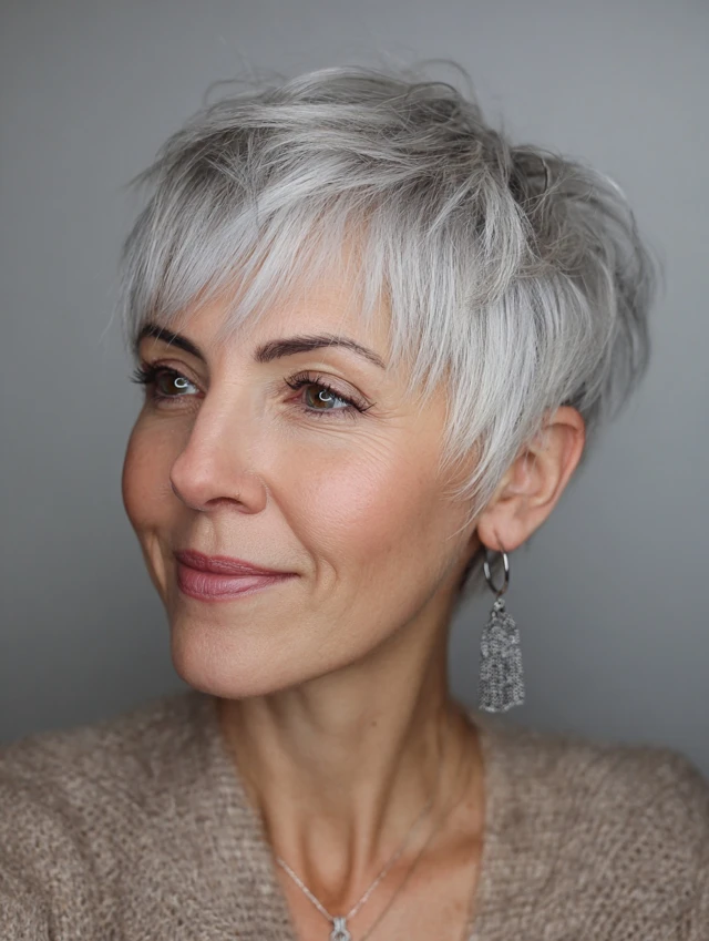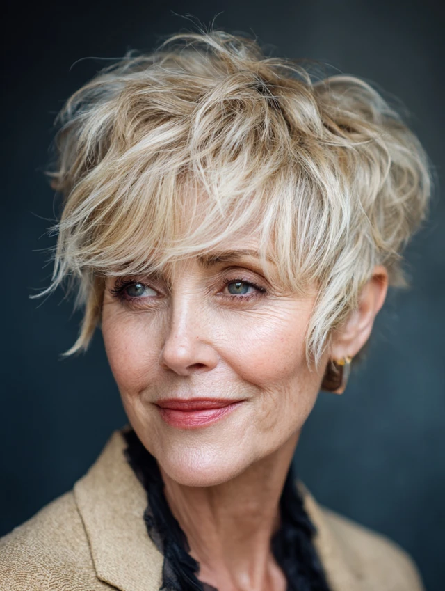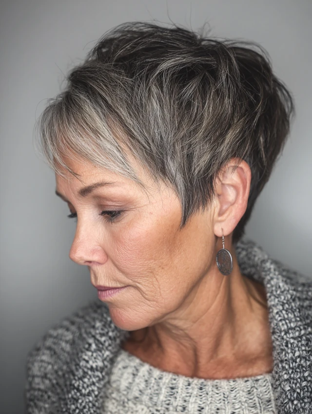 A shaggy pixie with choppy layers gives volume and personality without a lot of styling effort. It’s modern yet age-appropriate.