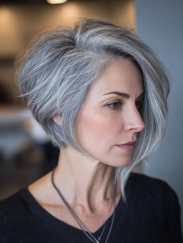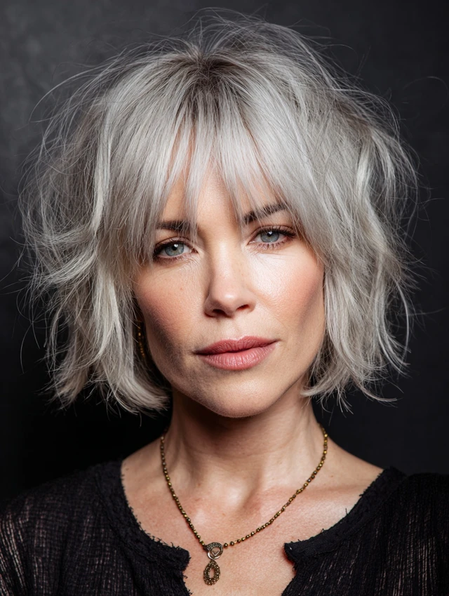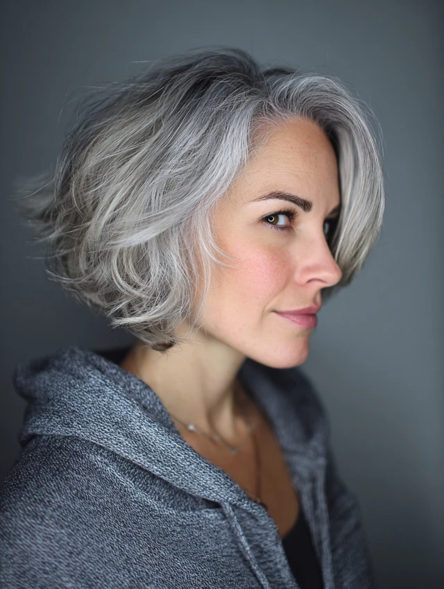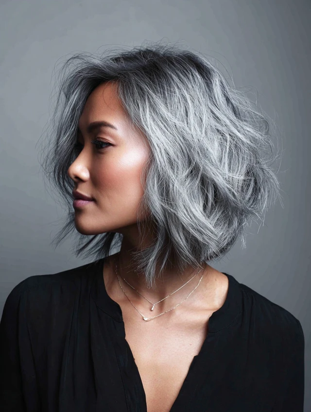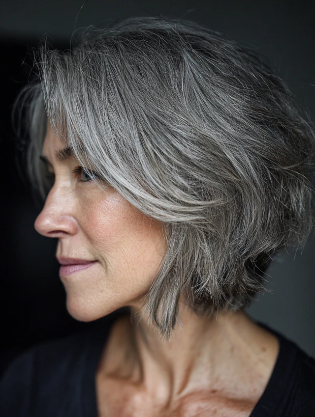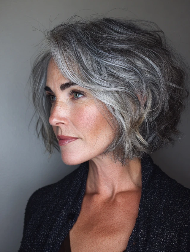 Choppy layers or wavy finishes create an effortless, carefree vibe. Tousled gray bobs are low‑maintenance but still look full of personality.