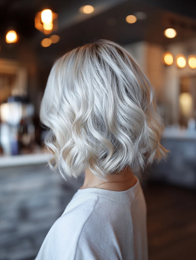 Loose waves add softness and feminine movement to the cut, complementing both short and longer bob lengths.