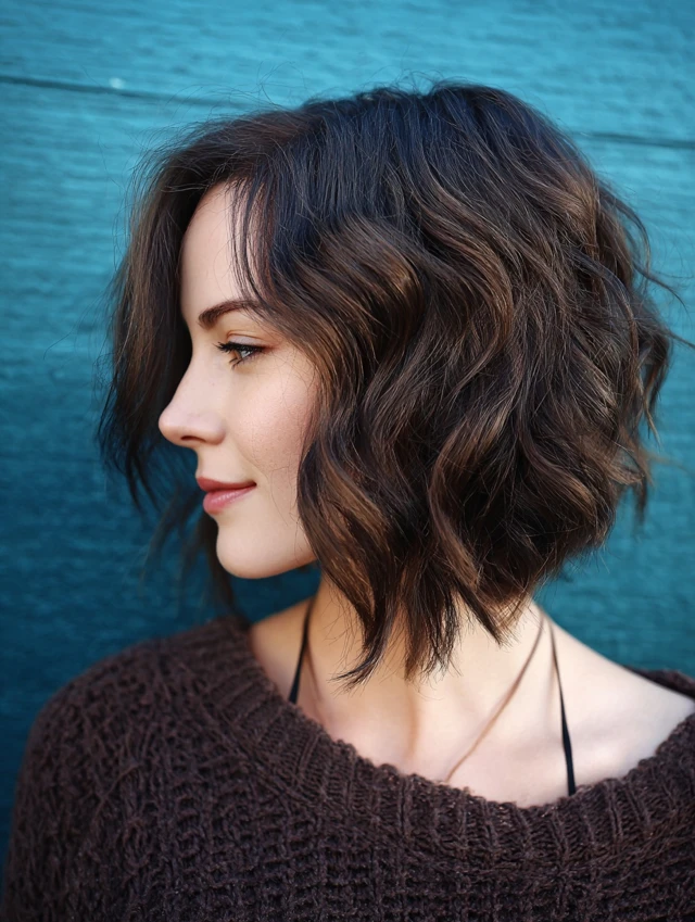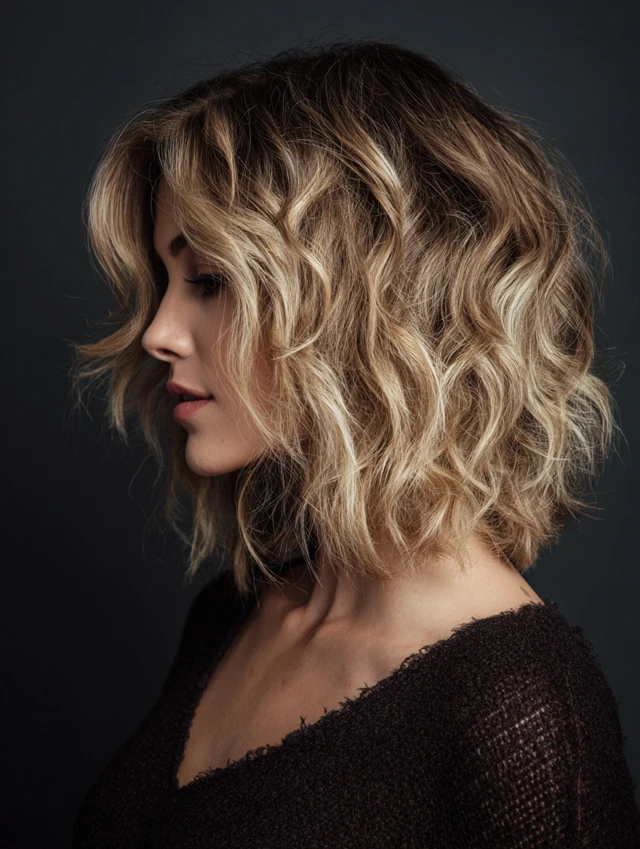 Loose, tousled waves add texture and movement without weighing the sides down, helping to balance fullness.