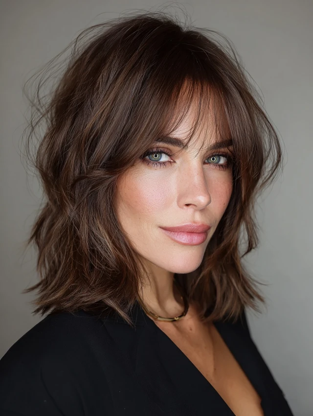 Medium hairstyles for chubby faces are all about strategic length, personalized layers, and clever parting. Whether you choose a textured lob, shoulder‑length waves, or face‑framing bangs, these styles help balance roundness and make your features look beautifully sculpted and elongated.