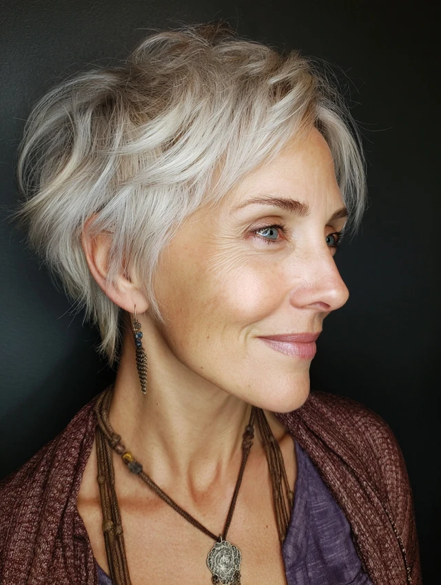 Letting your gray or silver hair shine adds grace and sophistication to short styles — and it’s low‑effort, too!